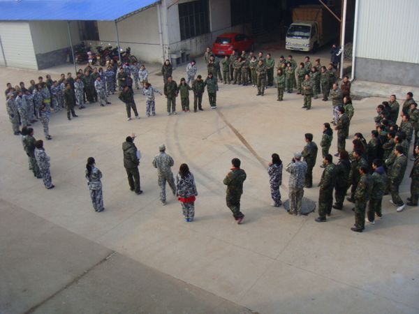 2011年2月14—15日,是群喜员工人生中不平凡的两天,群喜公司为了让新老员工更快的熟悉工作环境、增加团队的团结力、同事间的协调性。公司领导安排教官为公司员工实行为期两天的带薪培训。让员工能获得平时工作所得的同时还能高高兴兴进行军训,每个员工都能放开身心,全心的投入军训中去。