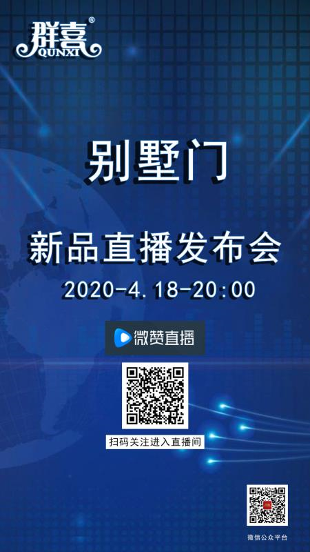 在疫情的大环境下,4月18日晚20:00,群喜别墅门召开线上直播2020新品发布会活动,众多新品纷纷亮相。