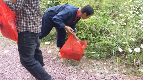大家提着垃圾袋到达目的地