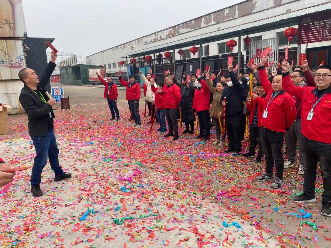 礼炮一响,黄金万两!鲜红的鞭炮纸绽放满地,一片红火,也寓意着群喜门业在新的一年红红红火火!虎力全开!生意兴隆!大吉大利!